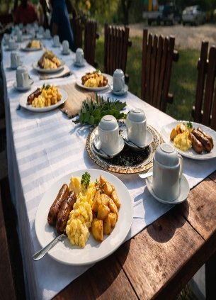 Yes, Voyager’s Centre Kikorongo has an on-site restaurant serving African and American cuisine for breakfast, lunch, and dinner.